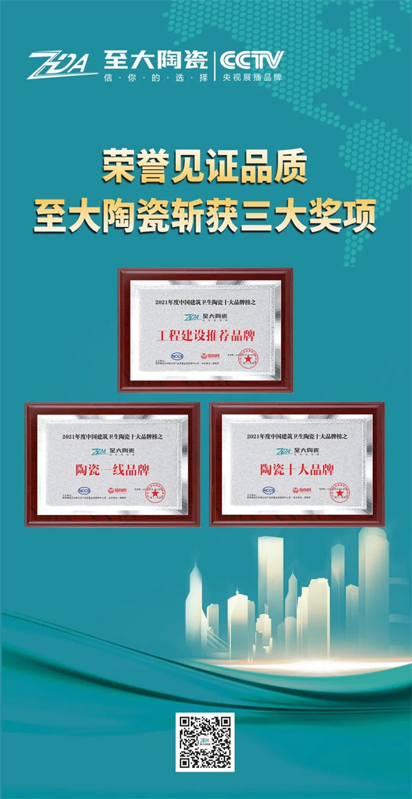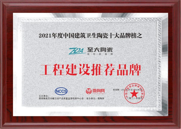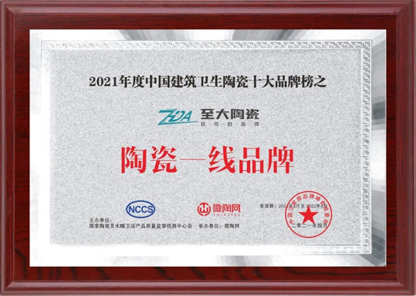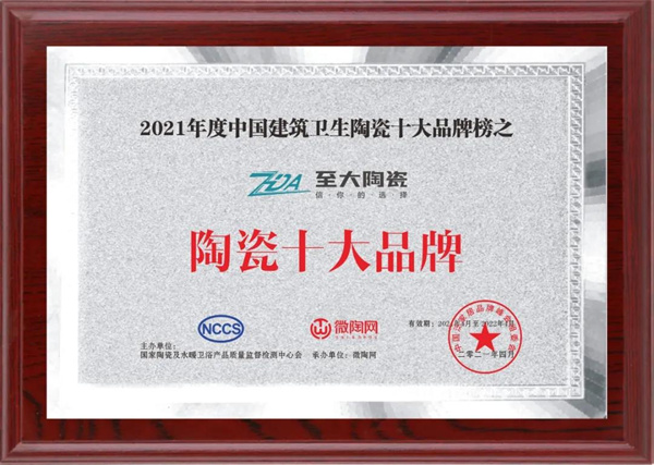 本次获奖,不仅仅是对至大陶瓷品牌实力的认可,同时也激励着至大陶瓷今后在行业中不断进步。