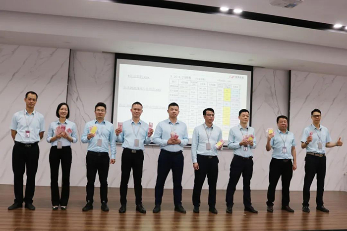 随后,李总为业绩领先的品牌、销售人员,以及职能部门(市场部、排产部)团队进行表彰颁奖。