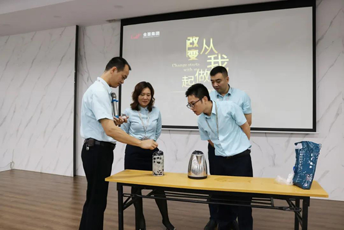 表彰之后,李总展开了《改变从我做起》的分享。李总让员工通过一个小小的实验操作,让大家知晓每个人的潜力是无限的,鼓励大家要学会改变思路,为自己创造更大的潜力。