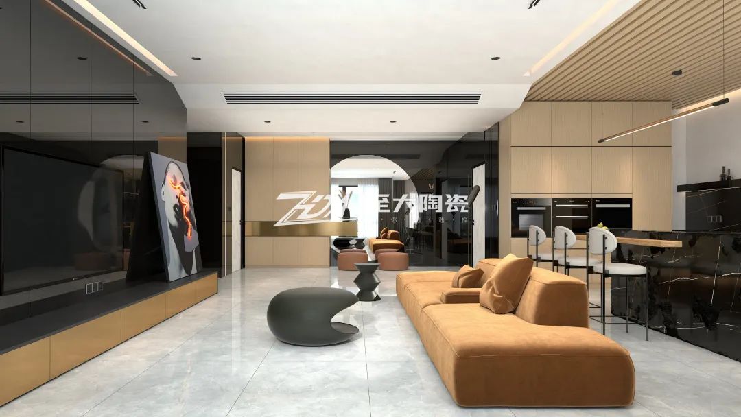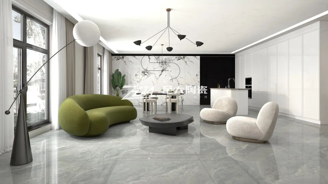 为了打造浪漫温馨的客厅,选择斯奈儿灰来铺设地面,再往空间里添加大量高级色彩,搭配起来和谐美观,视觉上既舒适又减压。