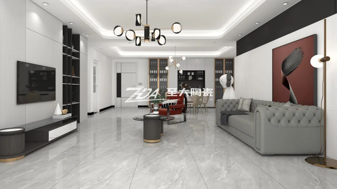 落地吊灯和天花吊灯的应用,在整体布局之上,为空间增添了新的动力。